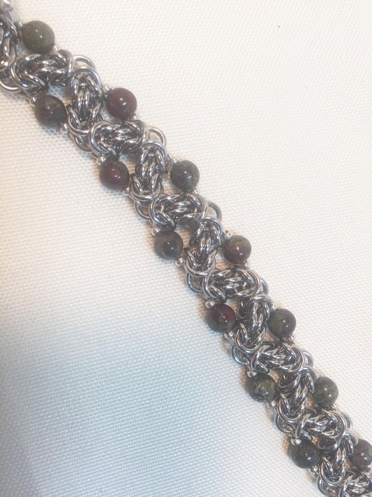 Chainmaille Byzantine bracelet with dragon's blood jasper