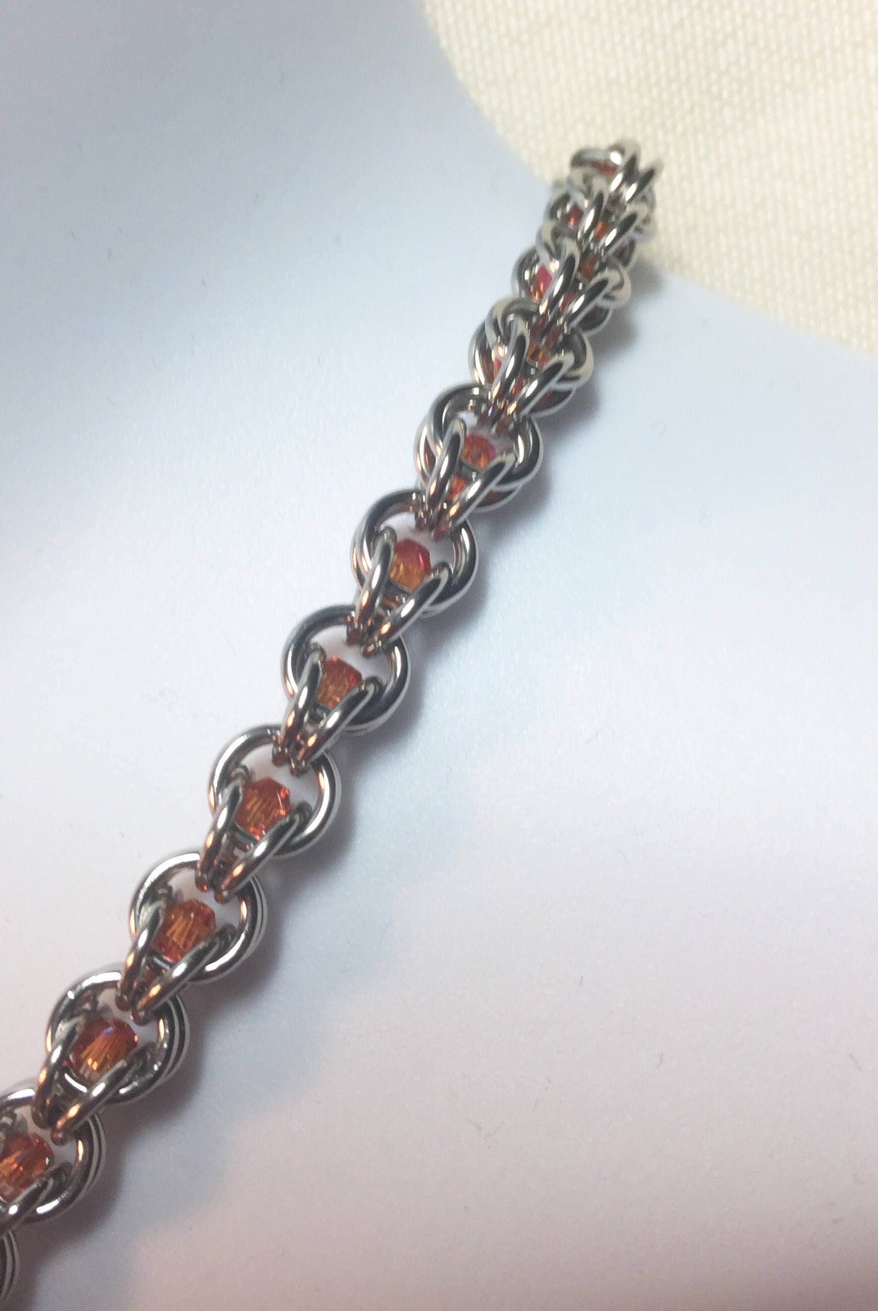 18” Necklace with Astral Pink Swarovski 4mm crystal captured in Stainless steel with Astral Pink Swarovski spike pendant-matching earrings