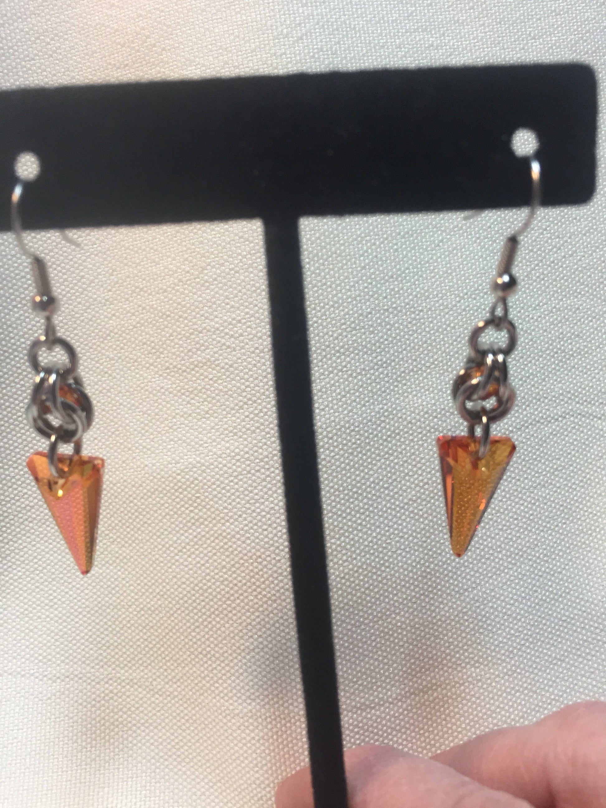 Matching earrings with 18mm Astral Pink Swarovski spike crystal-$15