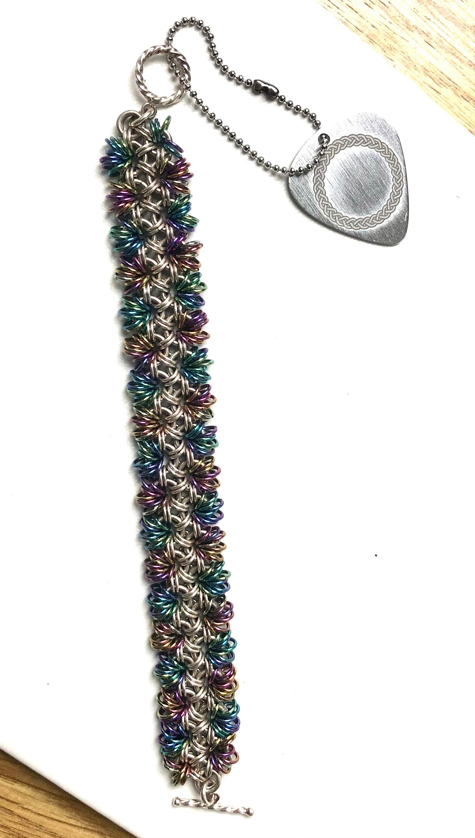 This bracelet showcases pretty much the whole color spectrum of niobium!